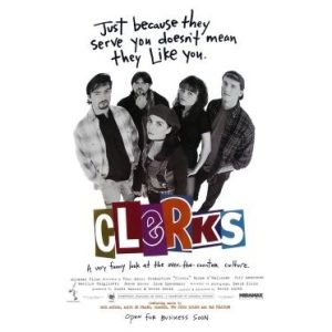 nie ma chyba zbytnio co opisywac fabuly. przeciez ten film stoi na poleczke o nazwie „kult i klasyka ktora trzeba znac”. pokrotce: film to o… sprzedawcach. amerykanskie zadupie, glowny bohater Dante prowadzi sklep, ktory u nas bysmy nazwali monopolowym. postacie drugoplanowe: randal, beszczelny, ale jednoczesnie z glowa na karku kumpel prowadzacy wypozyczalnie video, veronica – obecna dziewczyna dantego i Caitlyn, byla dziewczyna ktora zdradzala naszego glownego bohatera na lewo i prawo, ale on i tak ja kocha, pomimo ze wlasnie sie dowiedzial, ze wychodzi ona za azjatyckiego projektanta. no i jeszcze mamy mnostwo przewijajacych sie przez sklep klientow oraz, przede wszystkim, dwoch dilerow koczujacych pod sklepem, znani jako Jay i Cichy Bob. damn, znow jednak opisalem fabule.